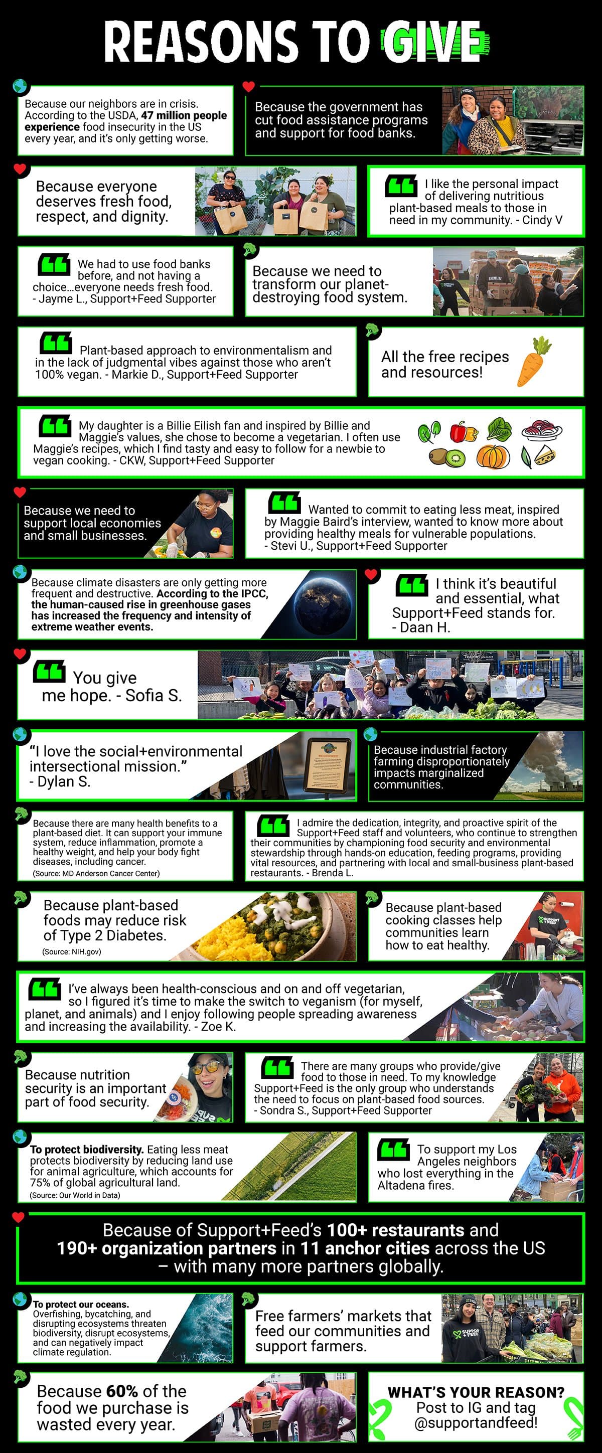 You can read a few of the REASONS TO GIVE to Support+Feed submitted by our supporters, partners, and dedicated volunteers.
